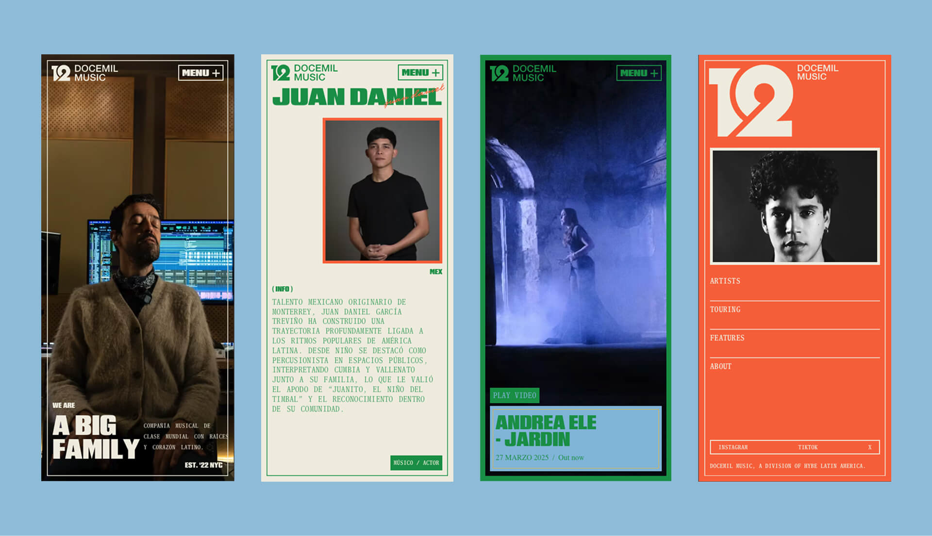 La identidad de marca ya estaba definida, pero no existía un espacio digital propio donde presentarse al mundo. Nuestro desafío fue crear un destino online que funcionara como un showroom: un lugar donde artistas, música, eventos y servicios del sello convivieran de forma clara, sin recurrir a estereotipos visuales, manteniendo una estética global con espíritu latino.