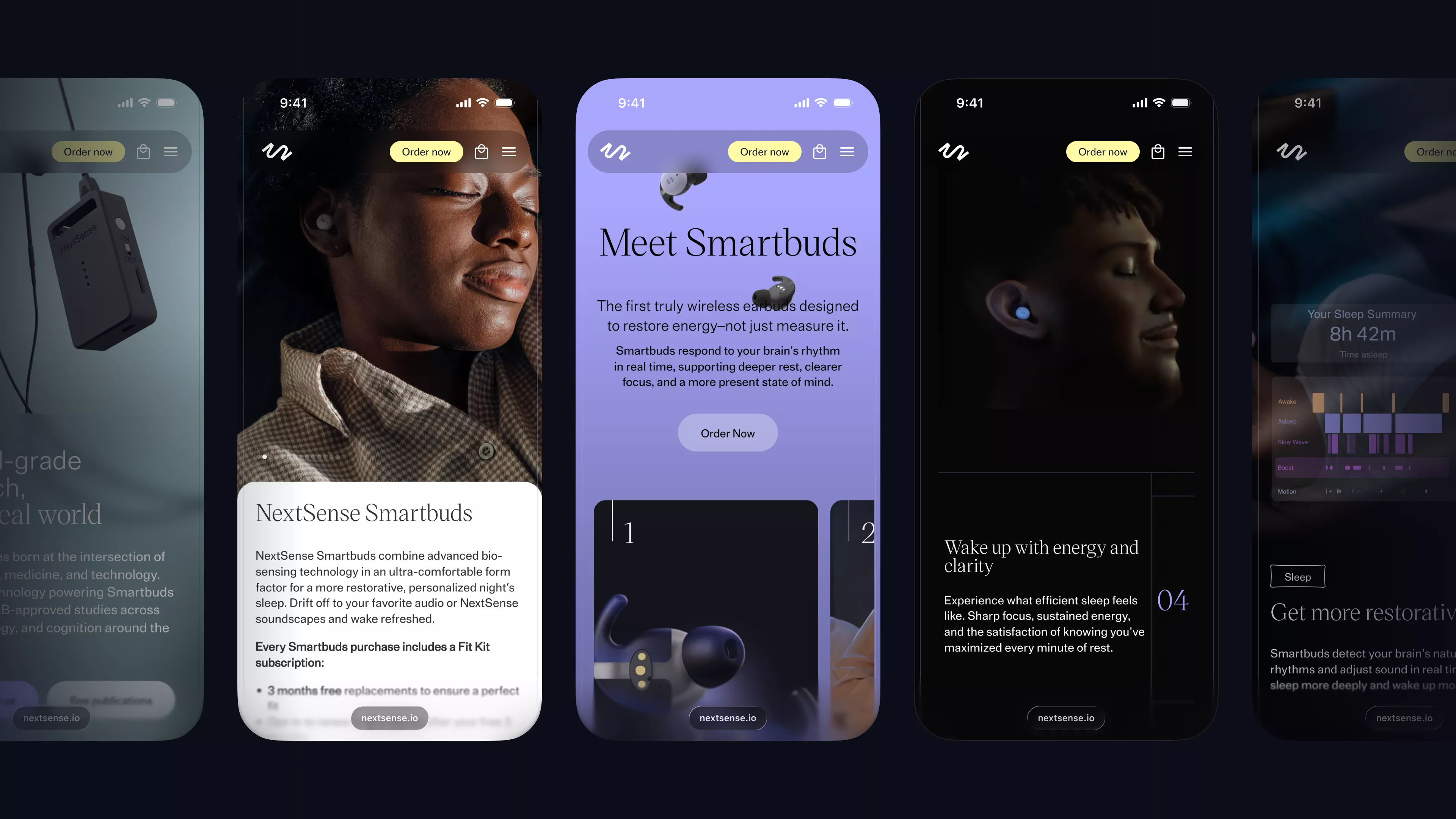 NextSense is a wearable technology brand redefining what sleep technology can do. Unlike most devices on the market that track sleep data passively, NextSense uses EEG sensors to actively intervene in the brain's sleep cycles in real time. The challenge was building a digital product capable of communicating a deeply scientific proposition to a broad audience, while driving conversion from day one of launch.