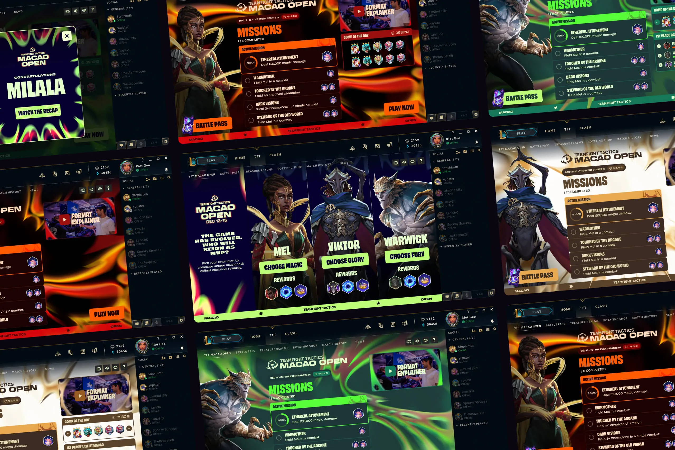 We designed in-game digital experiences to support the launch of Arcane Season II and the TFT Macao Open, creating new ways for the game and its community to interact.